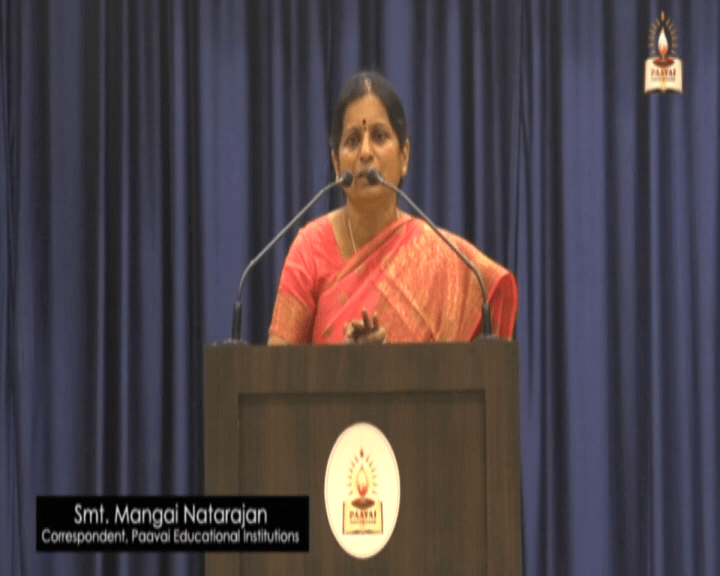 Shri.CA.N.V.Natarajan, the Chairman of Paavai Institutions inaugurated the Virtual induction programme at the ‘VivekanadarArangam’ and he spoke about the importance of educationduring this pandemic situation, then he further compared that Paavai is like a kuthuvilaku, that students, parents, teachers, society and the management form the five faces of the education system. Finally, he said that all the students will definitely get good education in this covid situationand willpassout successfully with their degreeand their dream job.Mrs.MangaiNatarajan, the Correspondent, stated that the students should acquaint themselves with this pandemic situation and will adopt the changes in their learning process. She continued that just as a small seed grows into a big tree over the years, the growth of Paavai from a Vithai into a Vriksham was dreamt and visualized by the Chairman at his seventeenth year. From then onwards, the Chairman took careof its luxuriant growth with devotion and dedication.The students who are the pearls of Paavai should therefore incorporate the concept of, ‘Vithai’ into their academic life.. She also focussed that Paavai is known for positivity and hence students should adopt Paavai culture,view the changes as challenges and do the best to come out of this situation.She pointed out the merits and demerits of using mobile phones. She highlighted the significance of the involvement of the parentsas well as the responsibility of the students in fulfilling the educational needs of a society and the nation.
