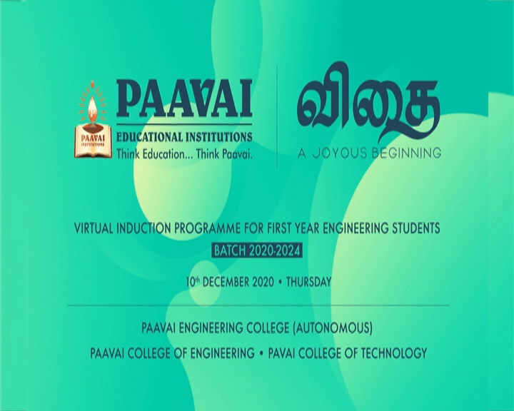 “Develop a passion for learning. If you do, you will never cease to grow”. The Faculty Development Department organized a six day Inductionprogramme through online mode for the first year students of Paavai Engineering colleges to familiarize them with the culture of the institution, learning techniques,Respect for education, Values,Time-Stress management, and also to prepare them for the Transition from school to college. Paavai is the guiding torch for the youth folk and it is always a student-centric institution and efforts are taken to instill self-confidence, courage in the minds of the students so that they will be successful in their life and career. With this note, the virtual induction programme was conducted from 10.12.2020 to 16.12.2020 in six batches. Each batch consists of nearly 180 students,who attended the induction programme onthese six days.