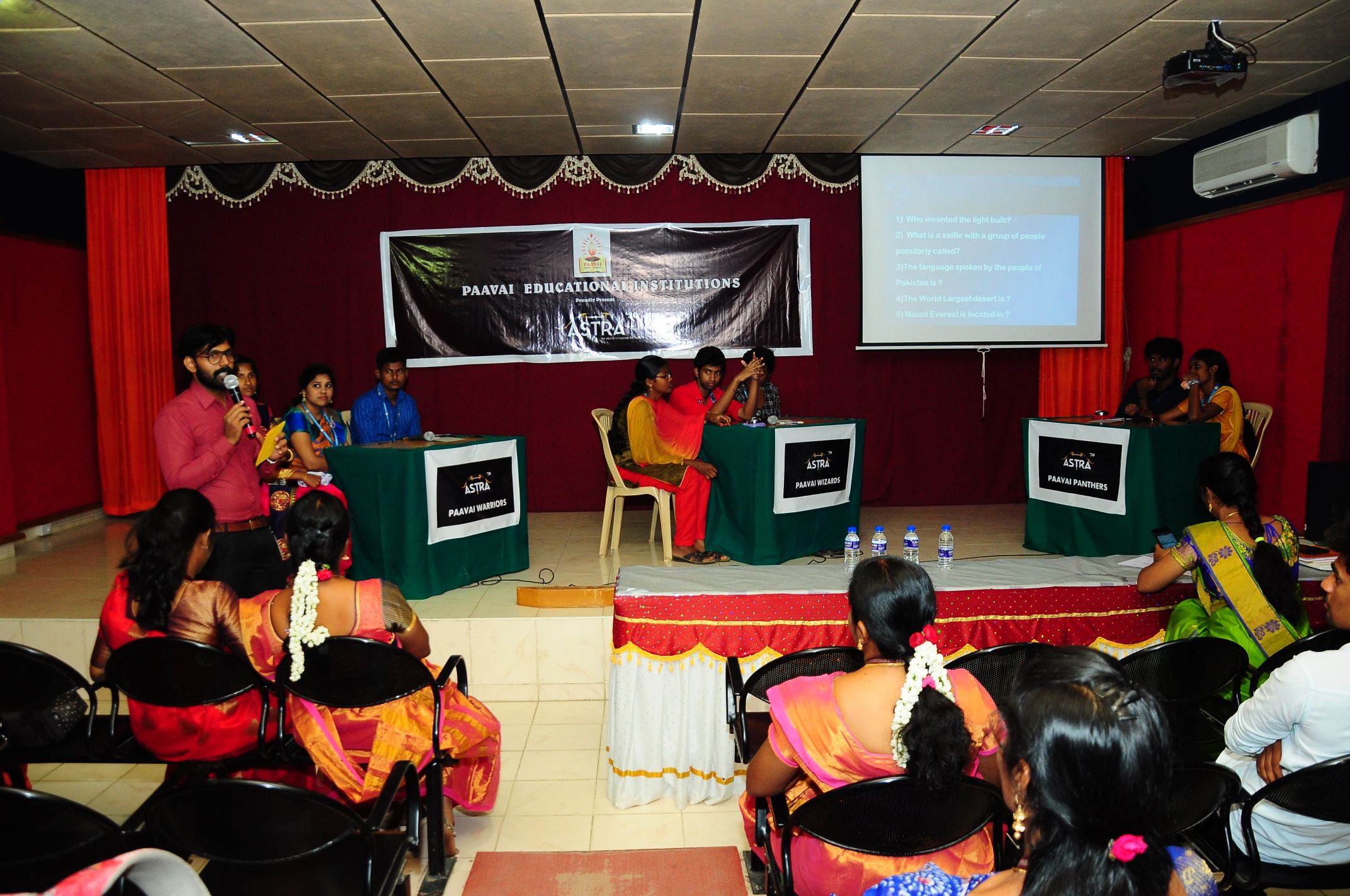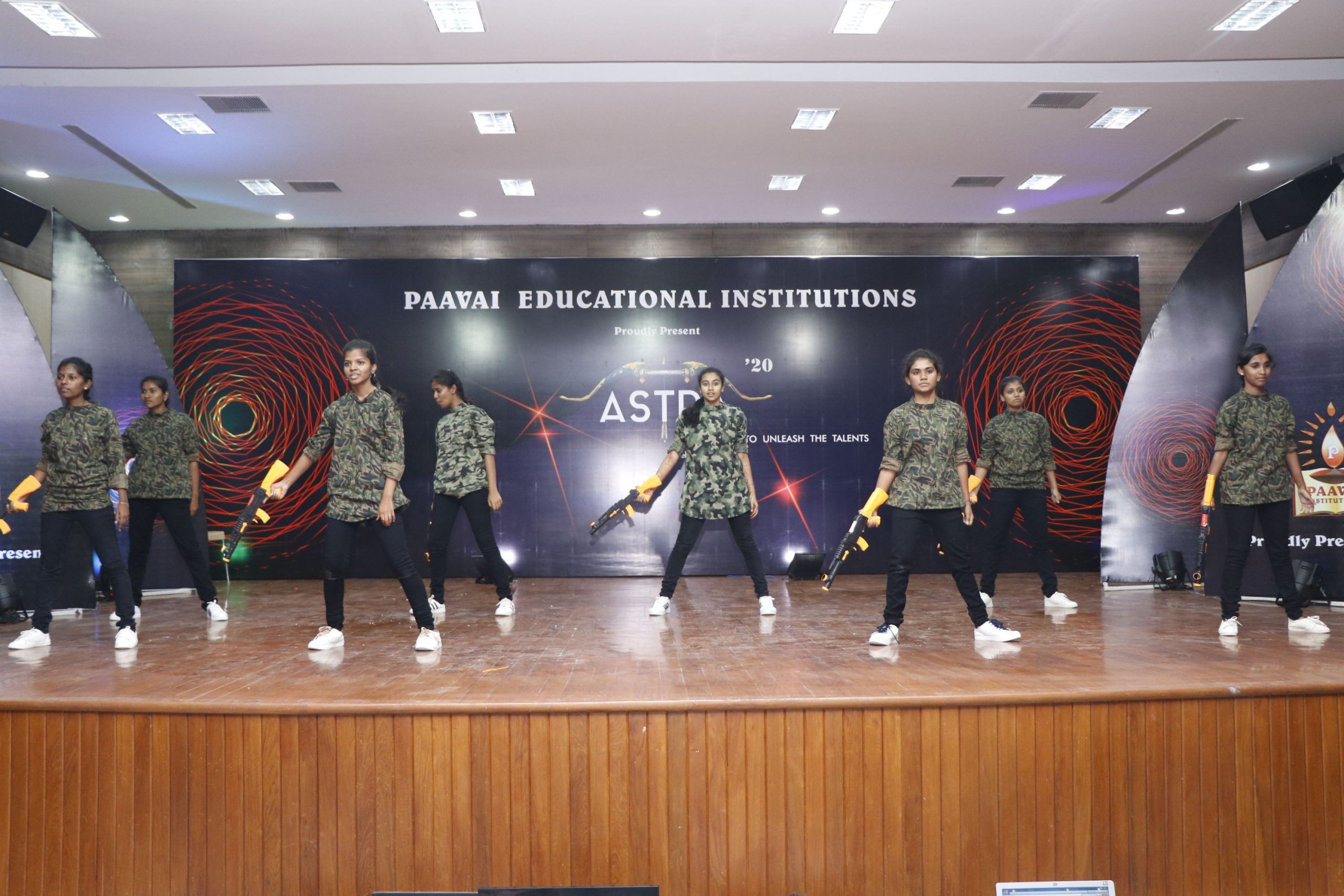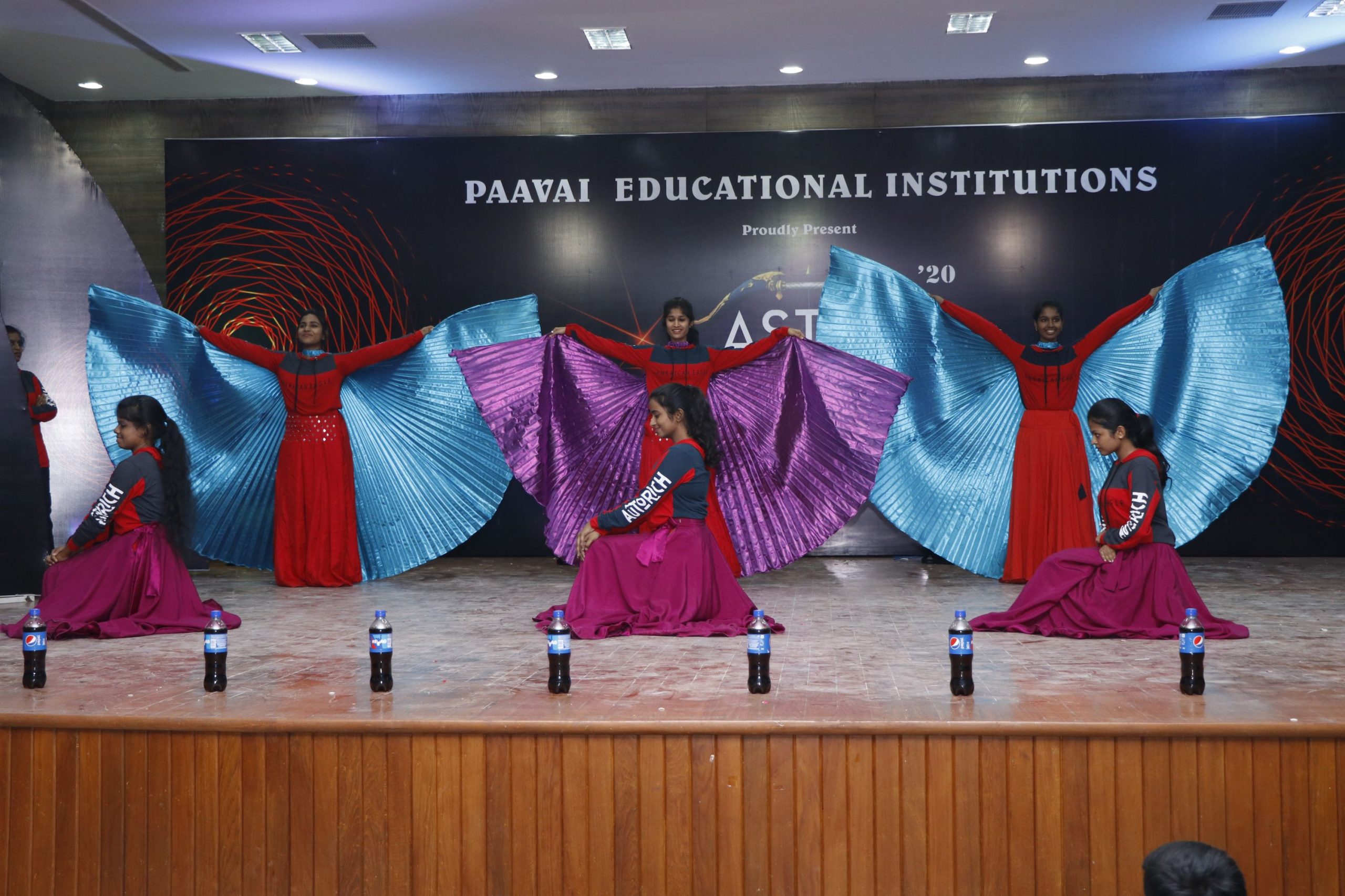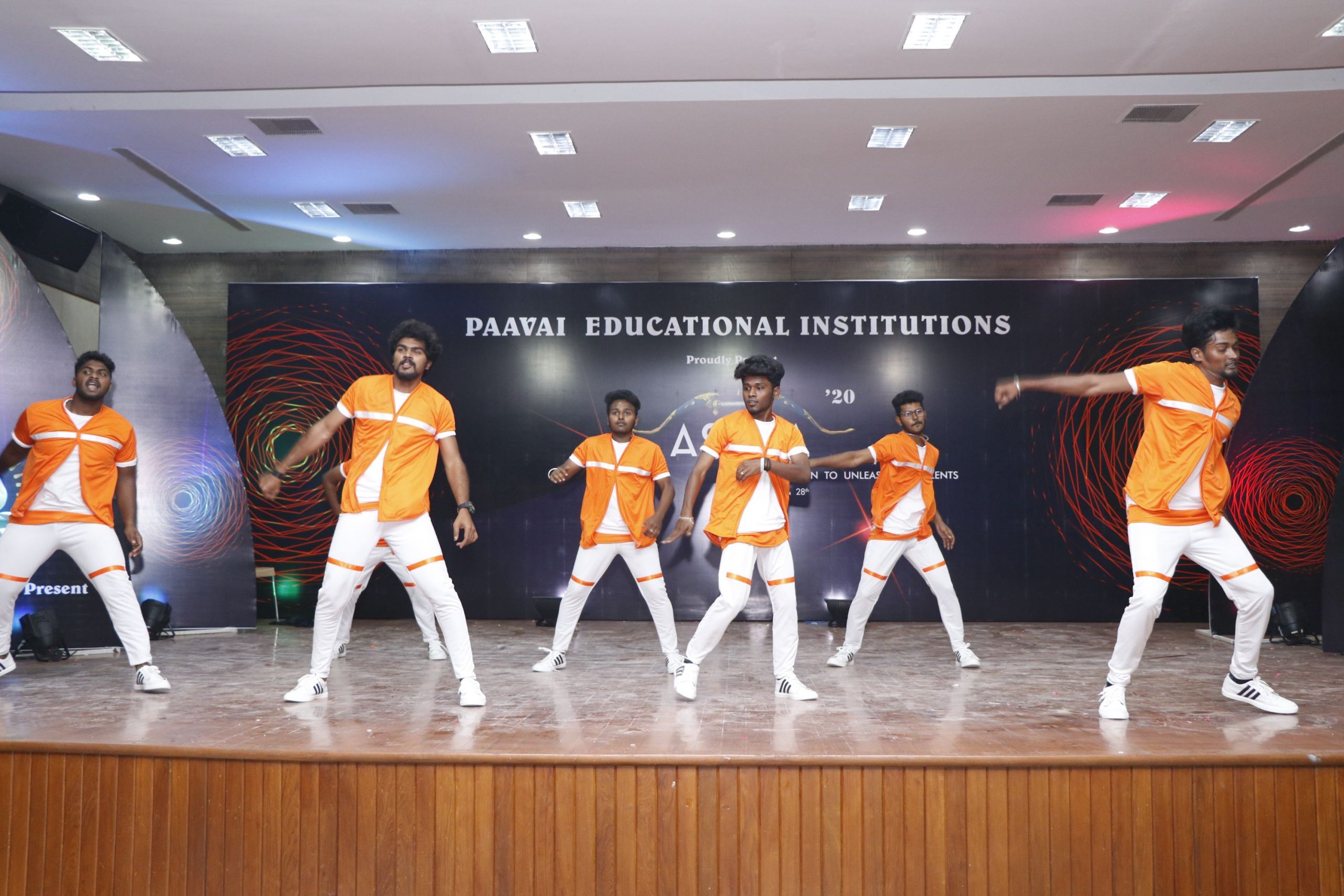 “ASTRA 2020” -A two day intra-collegiate cultural extravaganza was organized by Paavai Institutions under the student activity forum AURA and SPARISM on 27.02.2020 and 28.02.2020 for engineering students headed by Director, Student Affairs. Chairman CA. N.V. Natarajan presided over the function and delivered the presidential address. Mr.Gowtham, Playback Singer and Vijay TV Super Singer finalist season ‘7’was the chief guest. Director Student Affairs cum ASTRA convener Mrs.Avanti Natarajan welcomed the gathering. In the key note address, the chief guest Mr.Gowtham addressed the gathering that, “This ASTRA 20’ has given the students a platform to improvise their skills and interest towards cultural activities. ASTRA 20’, more than being a normal cultural fest, it has given them good experiences to shape their creativity and talents. He also included that these type of cultural fest will encourage and motivate younger minds to overcome fear and hesitation. In-addition he insisted that perseverance with determination will help them to succeed in life and become achievers. ASTRA 20’ had a new visage this year with a total of 40+ grand events grouped under 12 categories like Dance, Music, Singing, Dramatics, Pattimandram, Fashion Runway, Art Attack, Sports etc .These events were conducted to prove students’ strength and unity in this competitive cultural environment. Smt. Mangai Natarajan, Correspondent, Paavai Institutions felicitated the gathering. Chairman, Paavai Institutions greeted the Chief guest with a momento and shawl. ASTRA 20’ trophies were presented to the three teams – Paavai Wizards followed with Paavai Warriors and Paavai Panthers. Finally, Vote of thanks was delivered by Prof. M. Mohan, Head, Science and Humanities, Paavai Engineering College. In this function, Secretary Mr. Palanivel, Director Administration, Principals, Dean, Controller of Examination, juries, faculty members and students were present.