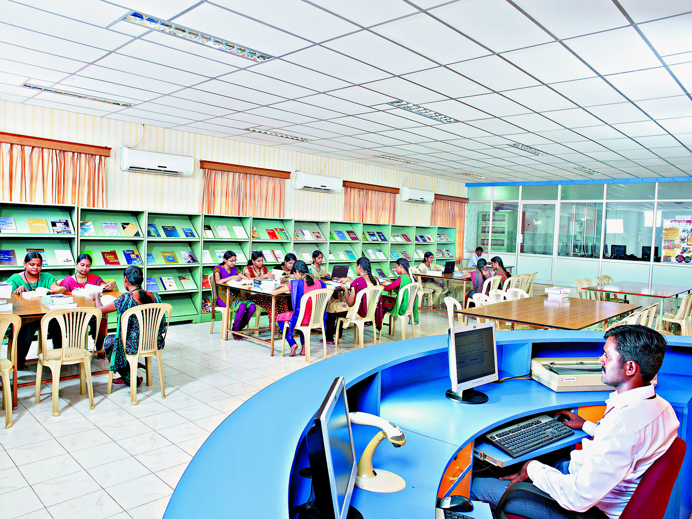 Adequate care is taken, that the Library is kept updated, to help the students in broadening their horizons of knowledge. It has an extensive collection of 47560 volumes and 11525 Titles, National Journals 144, International Journals 126 , college has 449 Springer Nature 3 Subject Collection – Engineering, Computer Science, Chemistry and Material Science e-journal package, magazines and non-book material CD & DVD 1126 for the students, and faculty members. The books are classified according to Dewey Decimal Classification Scheme. Open access system is followed in the library.