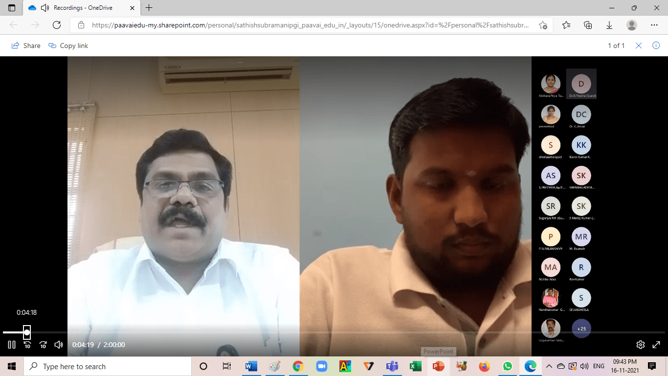 A Six-day Faculty Development Programme on ‘Emerging Technologies in Information & Telecommunication Engineering’ (FDP-2021) was successfully conducted in the Department of Electronics and Communication Engineering, Paavai Engineering College (Autonomous), Namakkal from 8th to 13th November 2021, organized by the department of Electronics and Communication Engineering in association with IETE – Erode center. The FDP programme received an overwhelming response with an overall 86 participants from Paavai Institutions and other institutions.