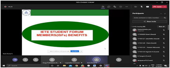 The Department of Electronics and Communication Engineering, Paavai Engineering College has inaugurated IETE Students forum on Wednesday 19th May 2021 at 5.00p.m through a virtual meeting conducted through Microsoft teams.