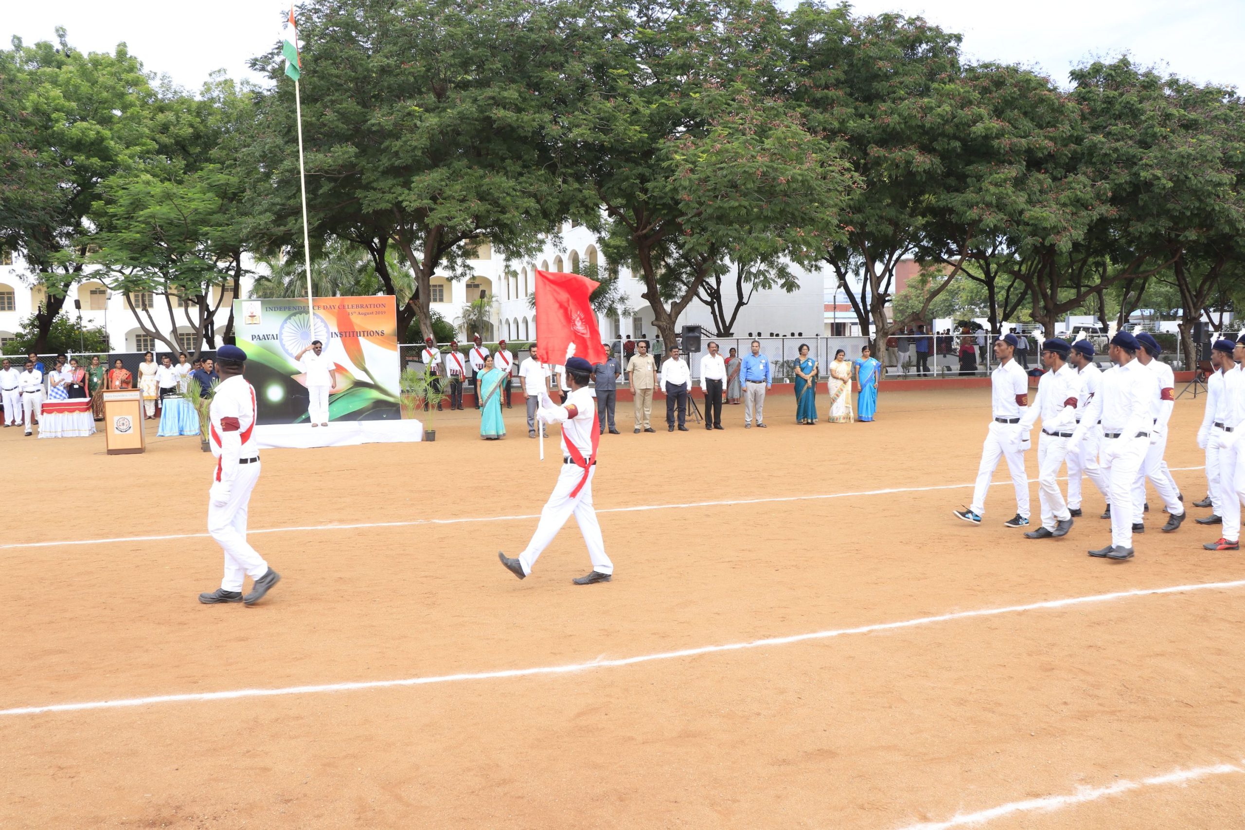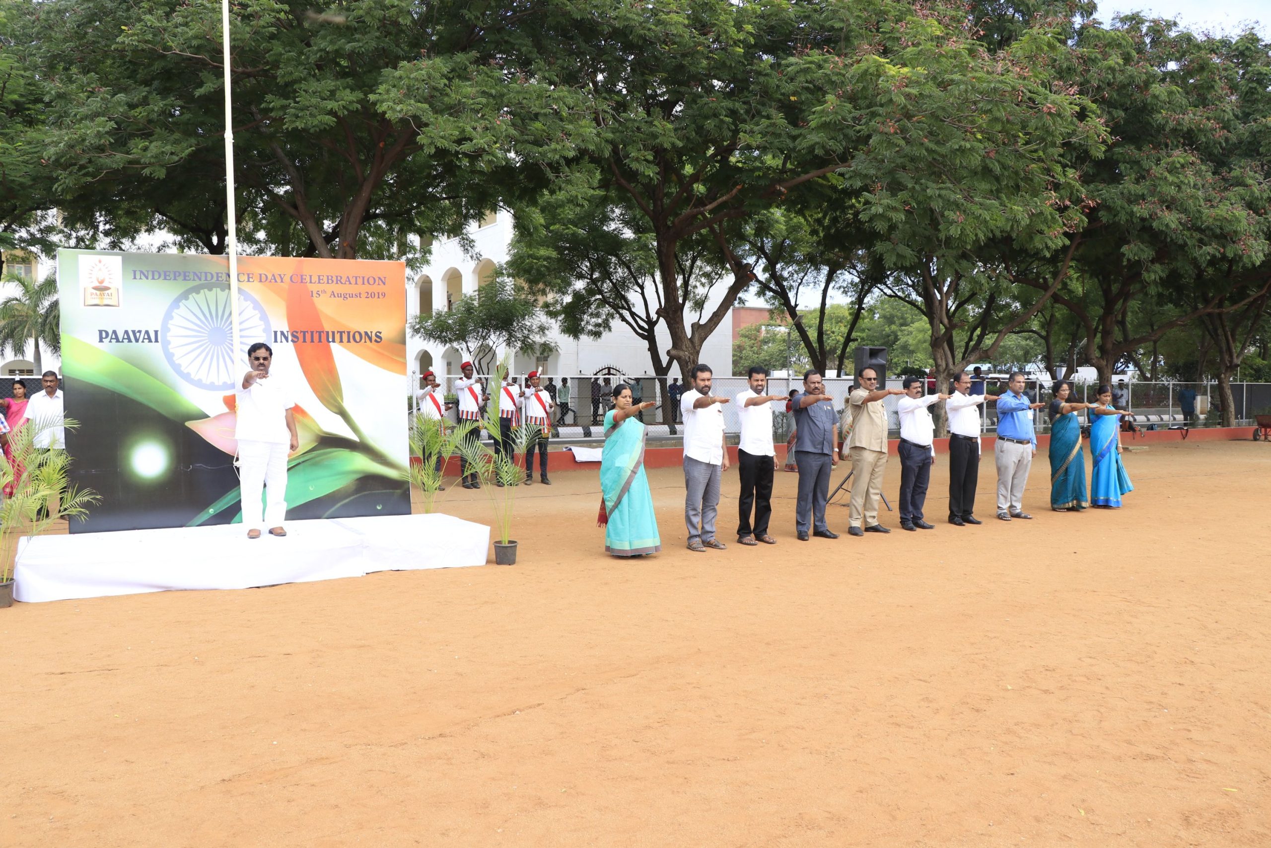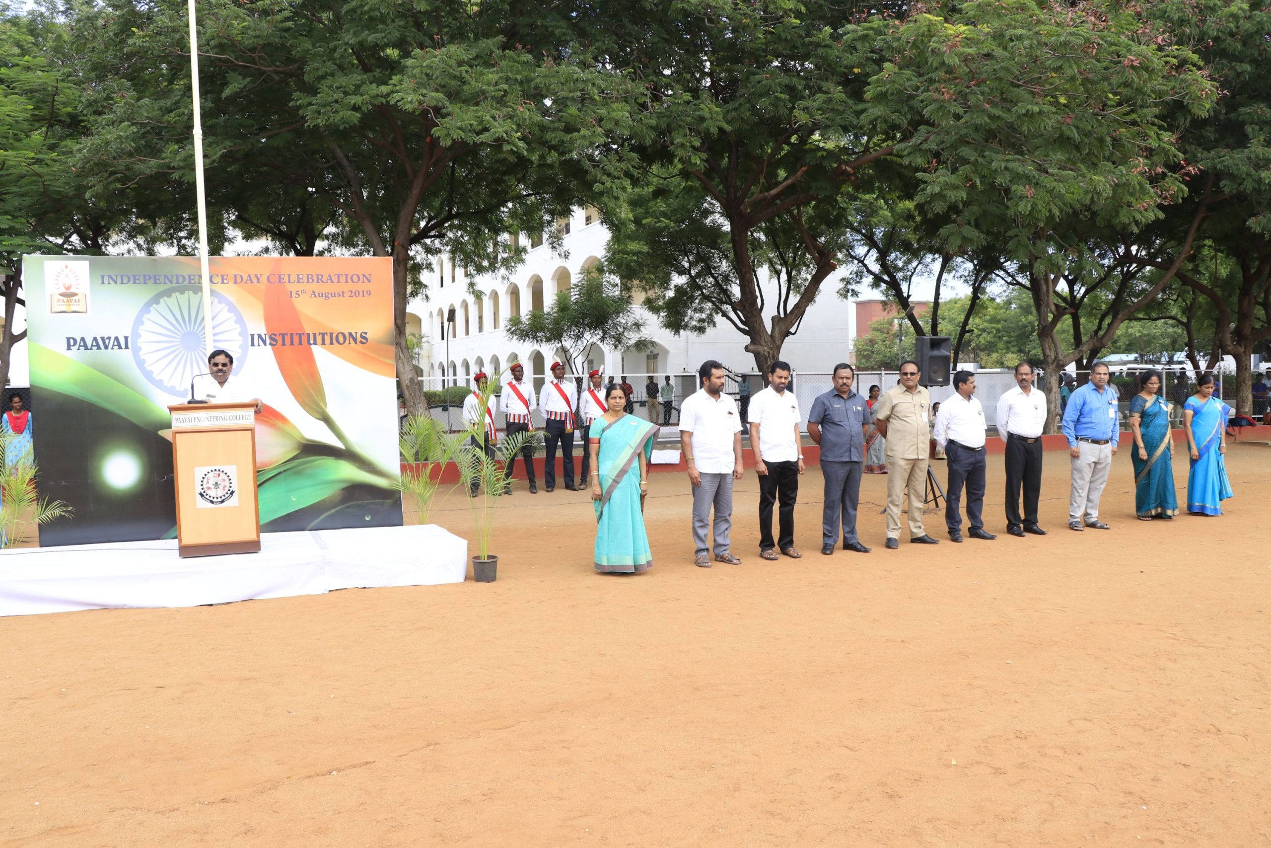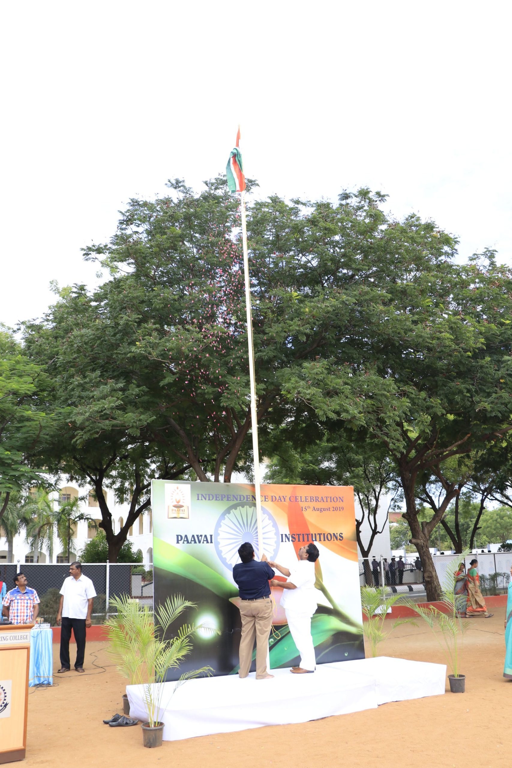 The 73rd Independence Day was celebrated by our Paavai Institutions at Kalpana Chawla Open Theatre on 15.08.2019 in a grand manner. Hoisting the national flag Shri.CA.N.V.Natarajan Chairman, Paavai Institutions, started the event with the acceptance of Marchpast (The Guard of Honour) which enthused the gathering with national fervor at the outset.