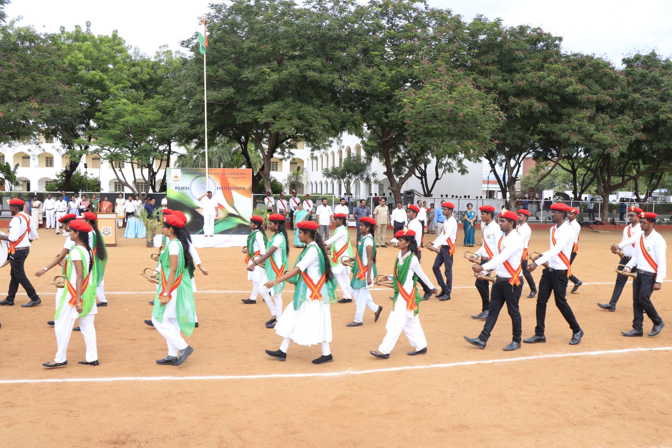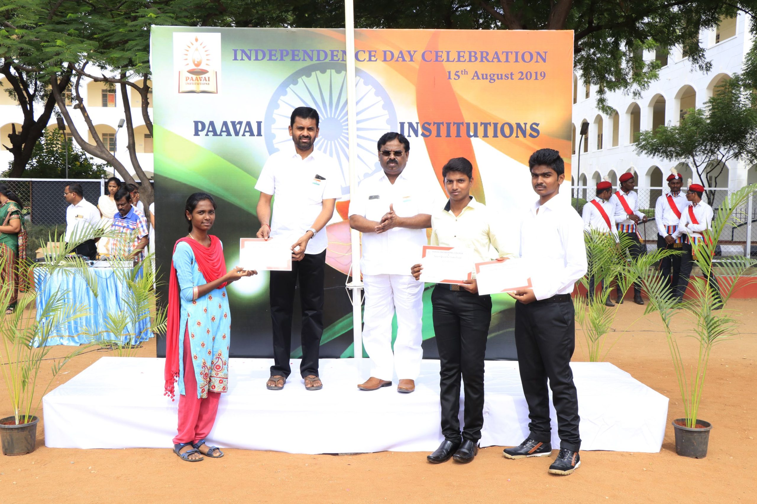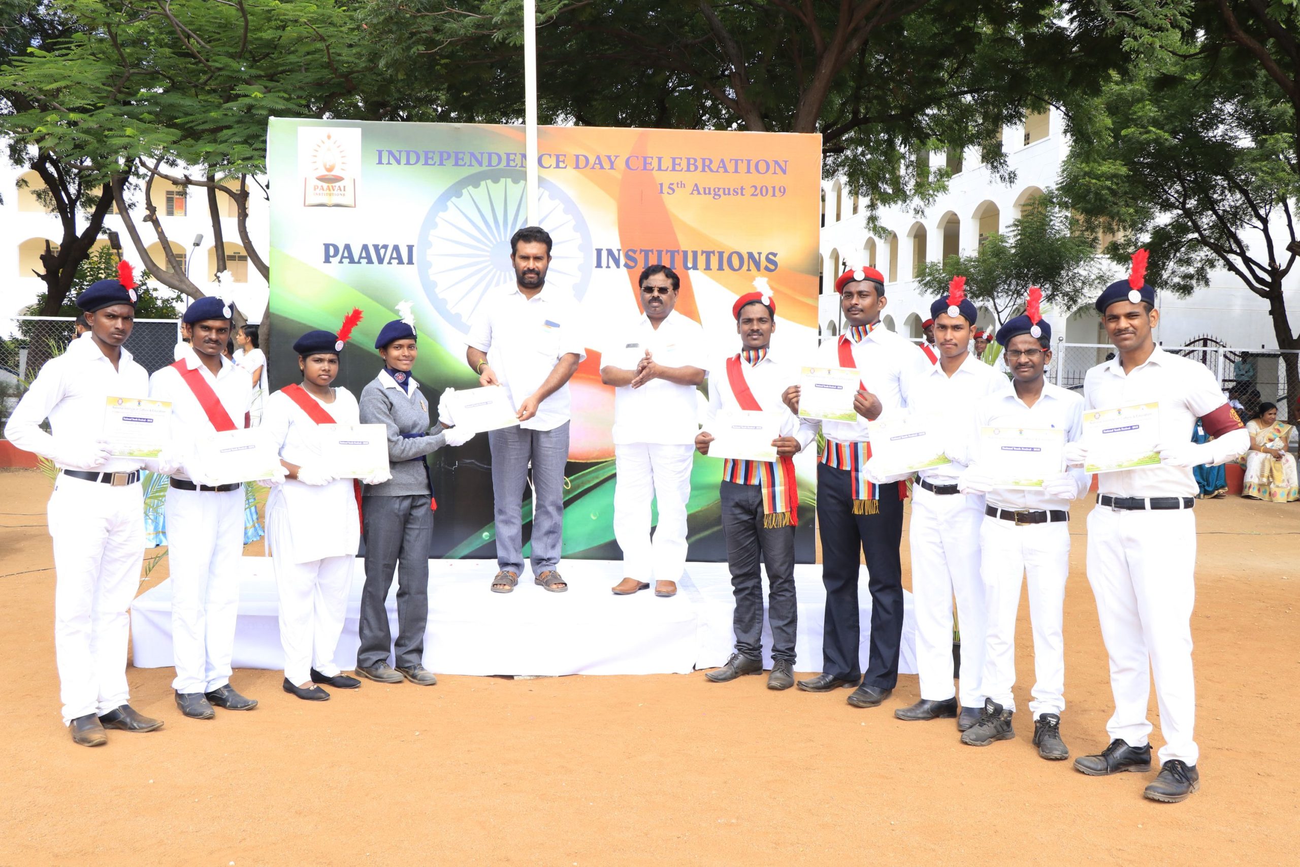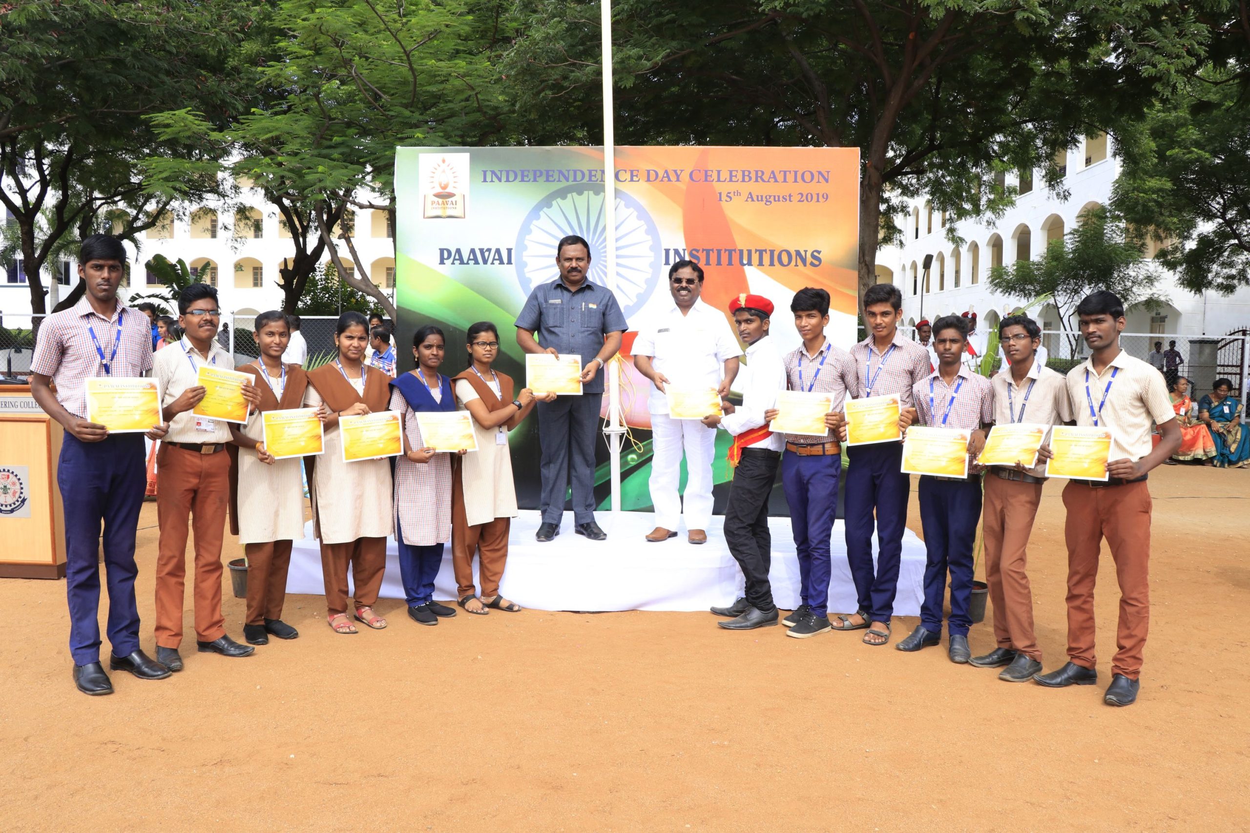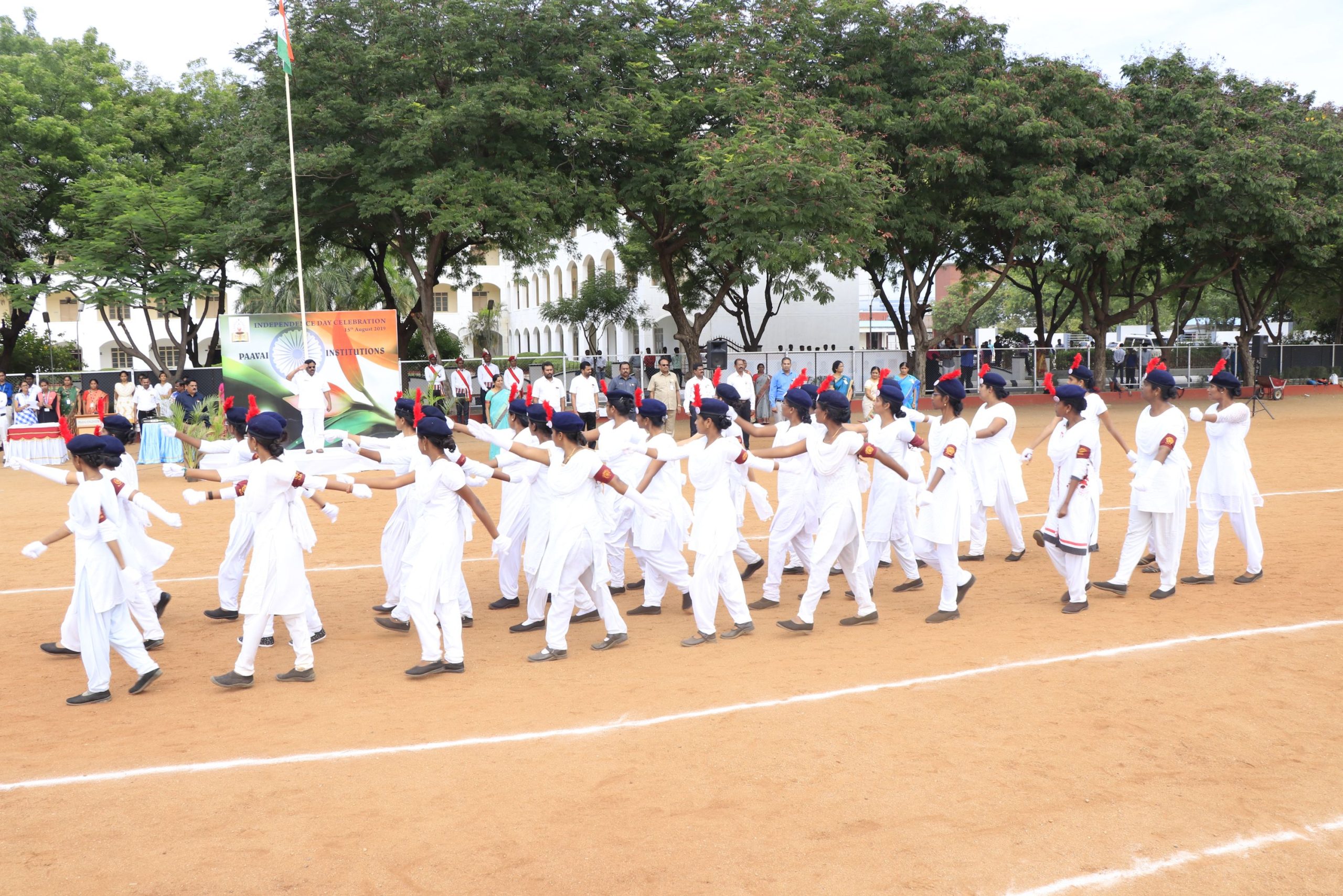 The 73rd Independence Day was celebrated by our Paavai Institutions at Kalpana Chawla Open Theatre on 15.08.2019 in a grand manner. Hoisting the national flag Shri.CA.N.V.Natarajan Chairman, Paavai Institutions, started the event with the acceptance of Marchpast (The Guard of Honour) which enthused the gathering with national fervor at the outset.