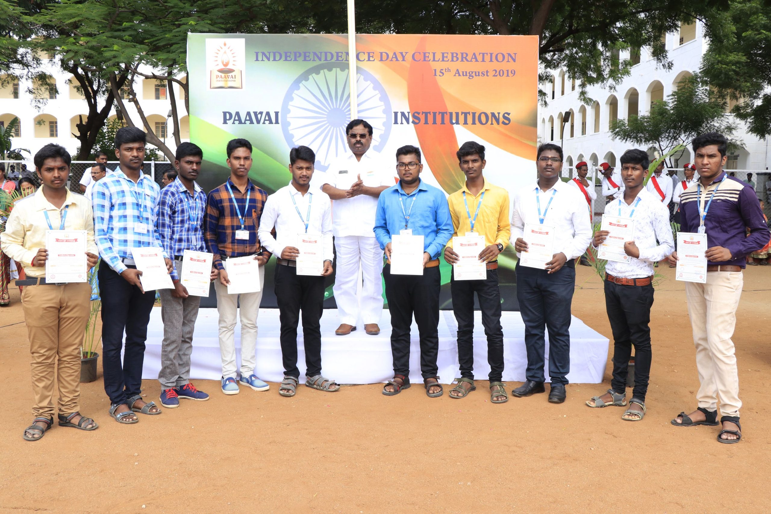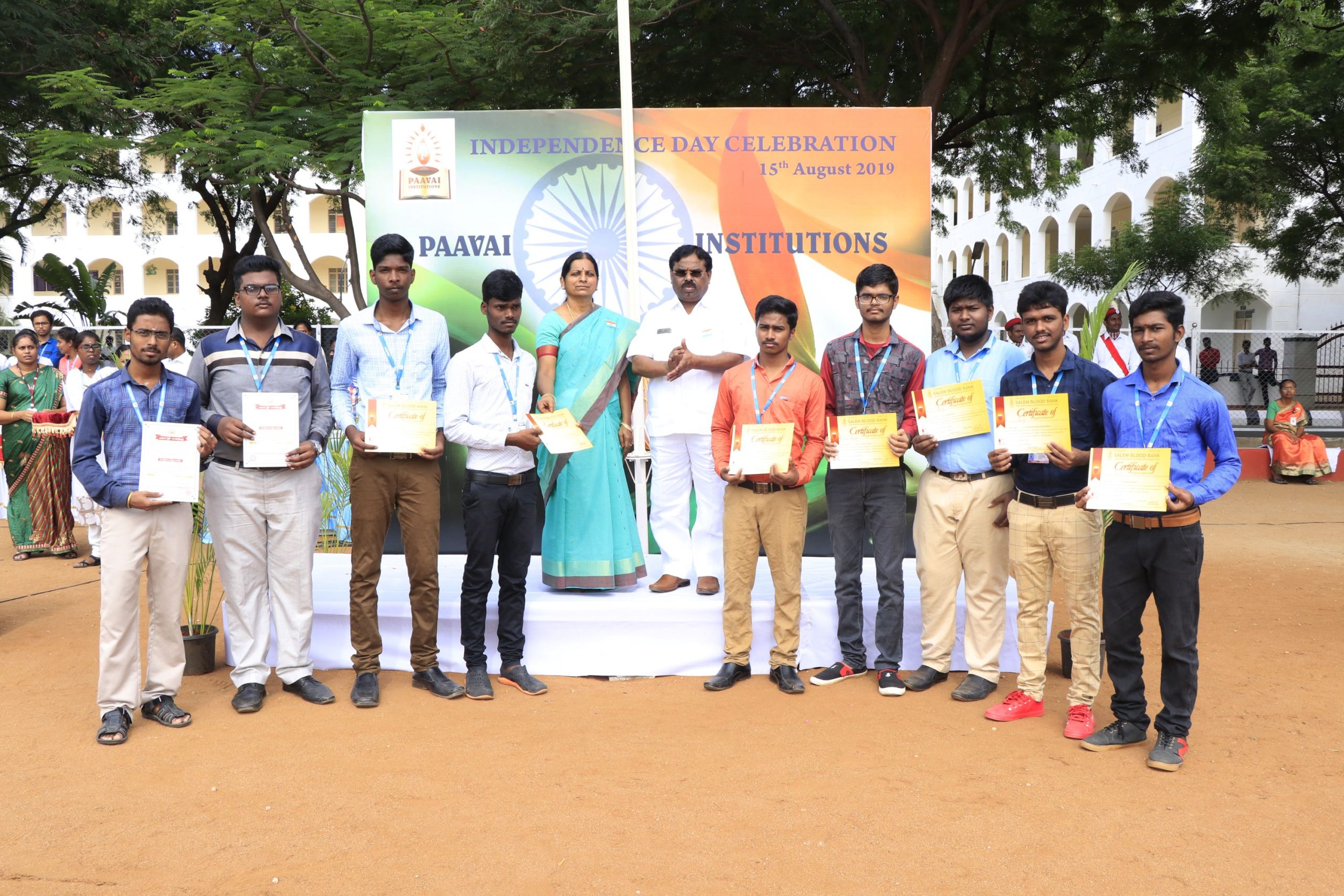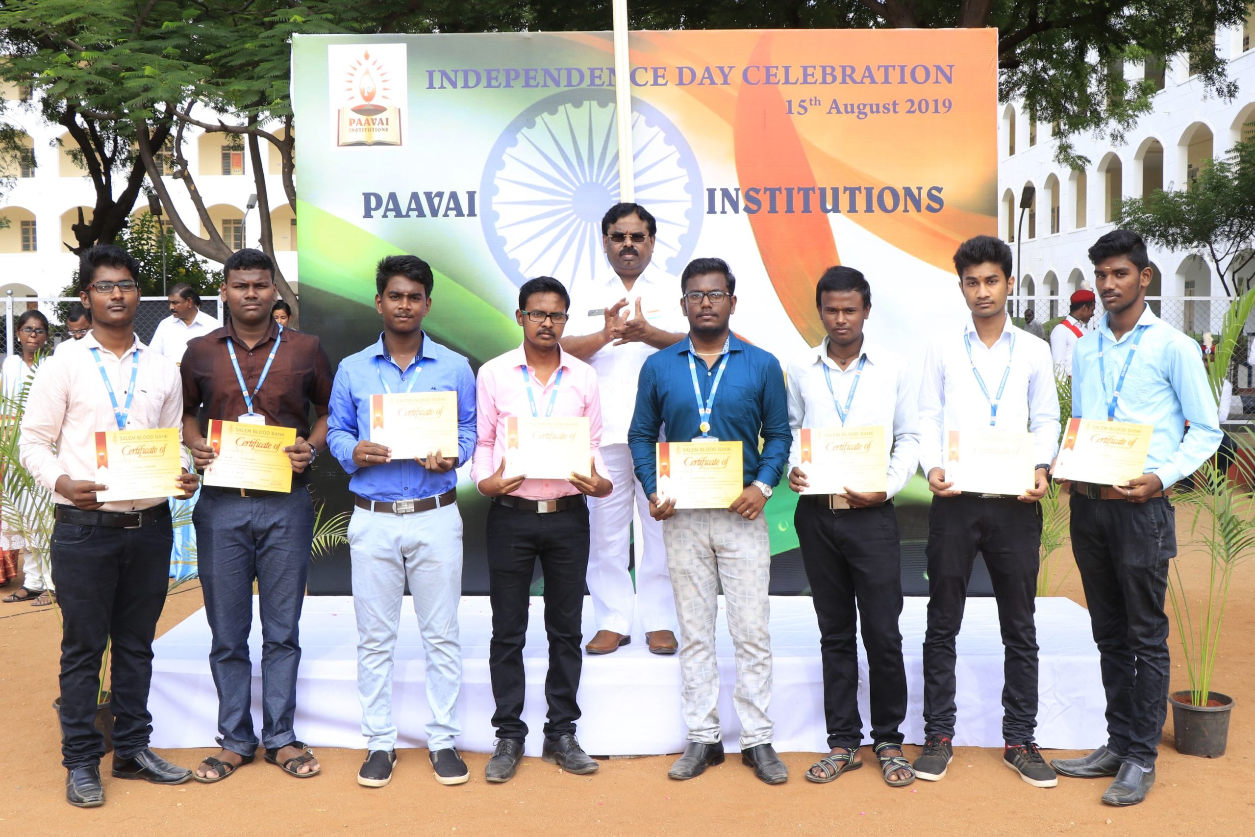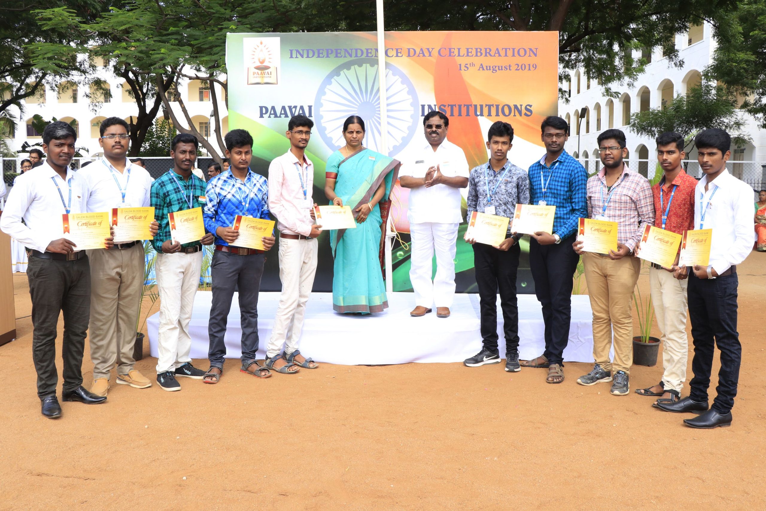 The 73rd Independence Day was celebrated by our Paavai Institutions at Kalpana Chawla Open Theatre on 15.08.2019 in a grand manner. Hoisting the national flag Shri.CA.N.V.Natarajan Chairman, Paavai Institutions, started the event with the acceptance of Marchpast (The Guard of Honour) which enthused the gathering with national fervor at the outset.