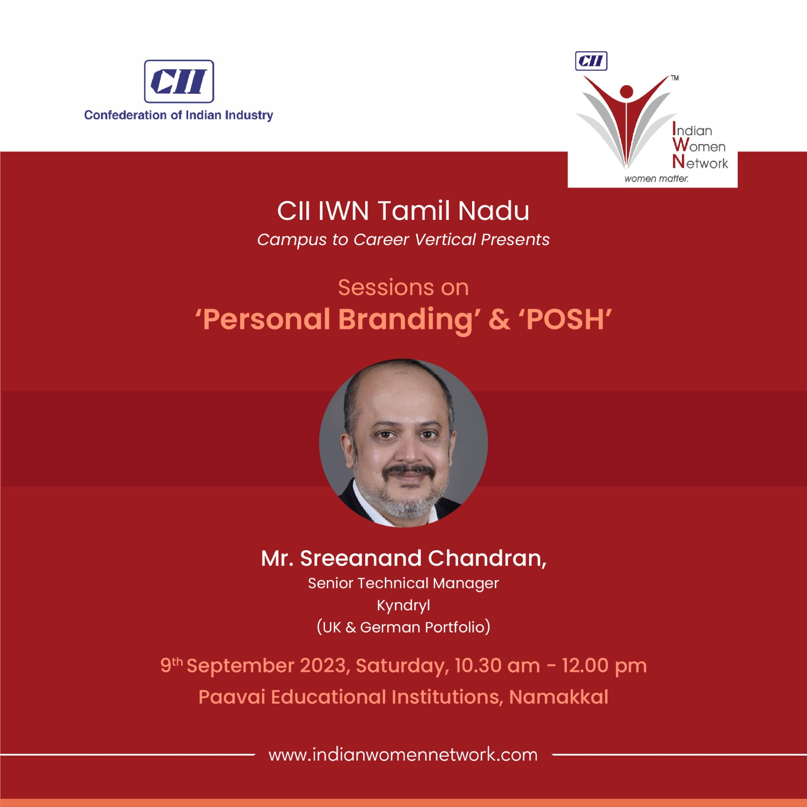 Paavai Engineering College along with CII IWN (Tamilnadu) conducted a session entitled “PERSONAL BRANDING & POSHon 09.09.2023 (Saturday). The girl students at Paavai Engineering College, Paavai College of Technology & Paavai College of Engineering attended the session. The resource person of the day Mr. Sreeanand Chandran, Senior Technical Manager, Kyndrl (US & German Porfolio) acquainted the students with various goal fixing tips and how to accept success and failures and maintaining the balance. He also enlightened the students about self-protection and the need for it. In case of any issues making your higher authorities understand your situation and its importance was emphasized during his talk. The students interacted with the subject expertise with their queries and illuminated themselves.