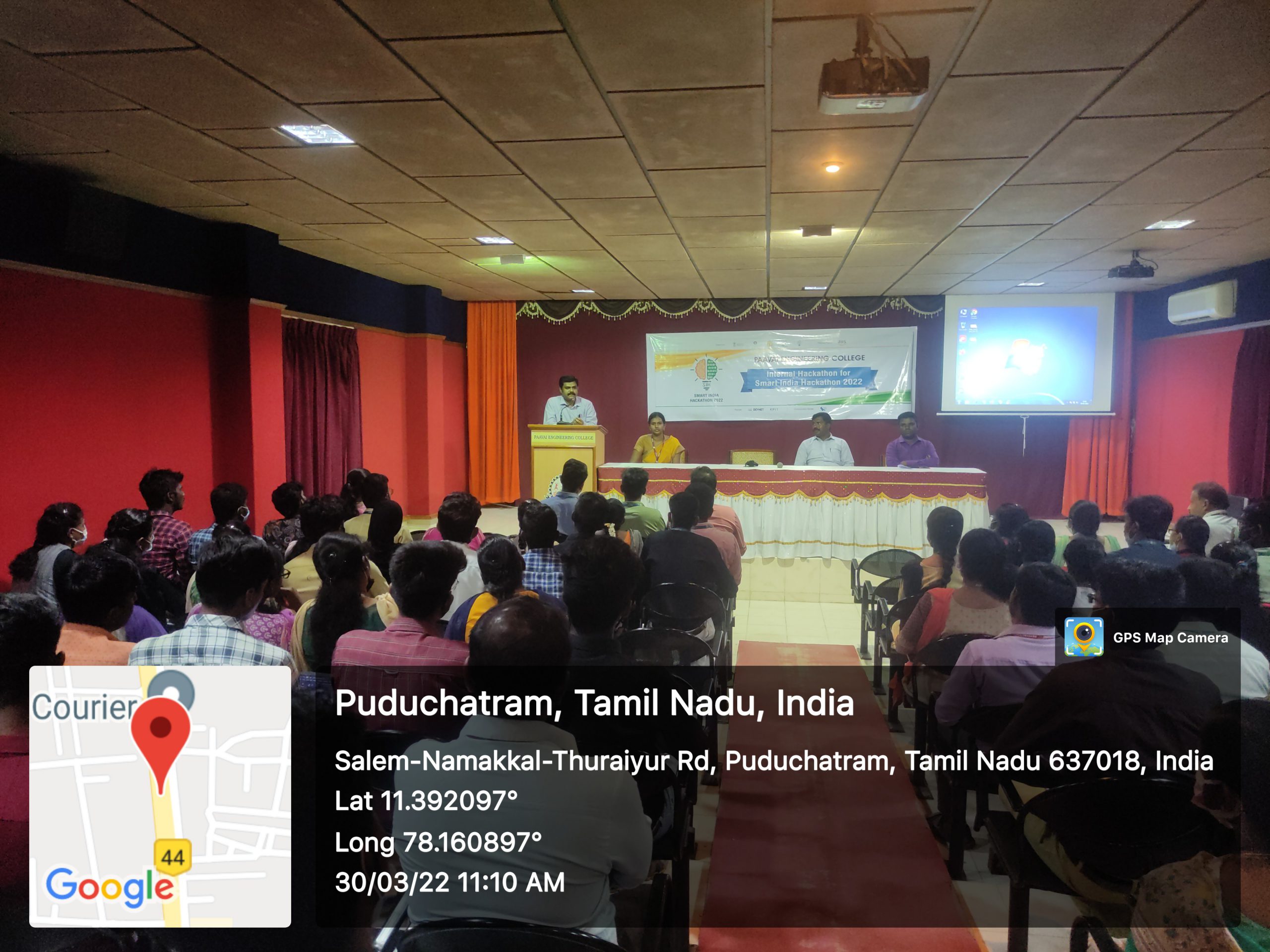 Followed with it, 30 batches of student teams from various departments participated in SIH-2022(Internal Hackathon) to deliver their project details in front of the Jury and panel of experts. The morning session commenced from 10.30a.m. to 1.00p.m. and it was very interactive, students exhibited their talents and explained their project ideas under various sub themes and innovation categories. The session continued in the afternoon session from 2.00p.m. to 4.30p.m. The Jury and panel of experts gave their valuable suggestions for the students to build up their concepts. The vote of thanks was proposed by Mr.Rajesh ASP/IT. Finally, it was very good learning experience .The valuable suggestions helped the students to understand the various social problems on par with industrial standards. Around 10 batches out of the 30 batches were shortlisted for the next level.