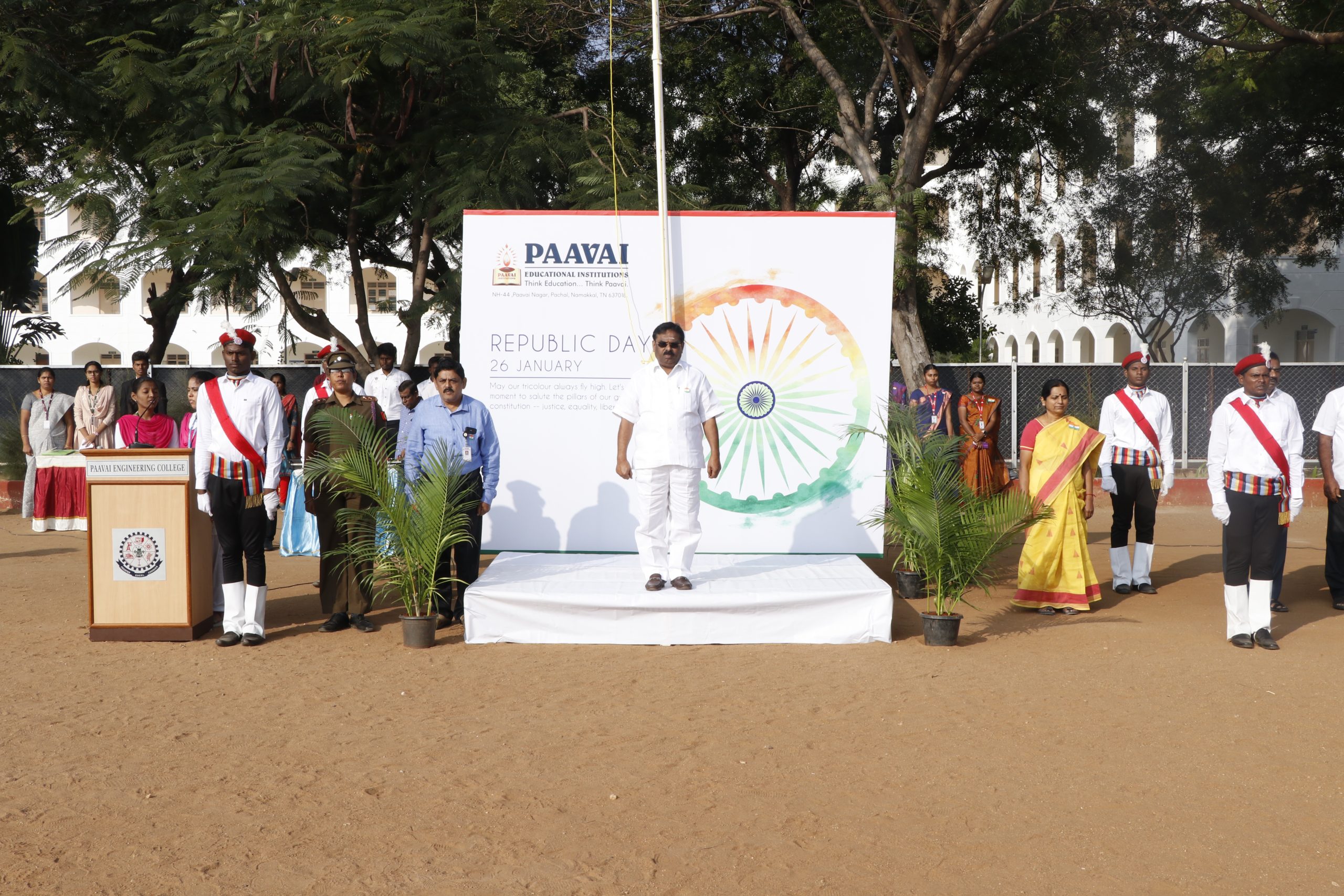 The 73rd Republic Day celebrations were celebrated at the Kalpana Chawla Open Theater on January 26, 2023. Mr. Shri.CA.N.V.Natarajan, Chairman of Paavai Institutions presided over the event. He received a general salute from the students in the parade and raised the national flag.