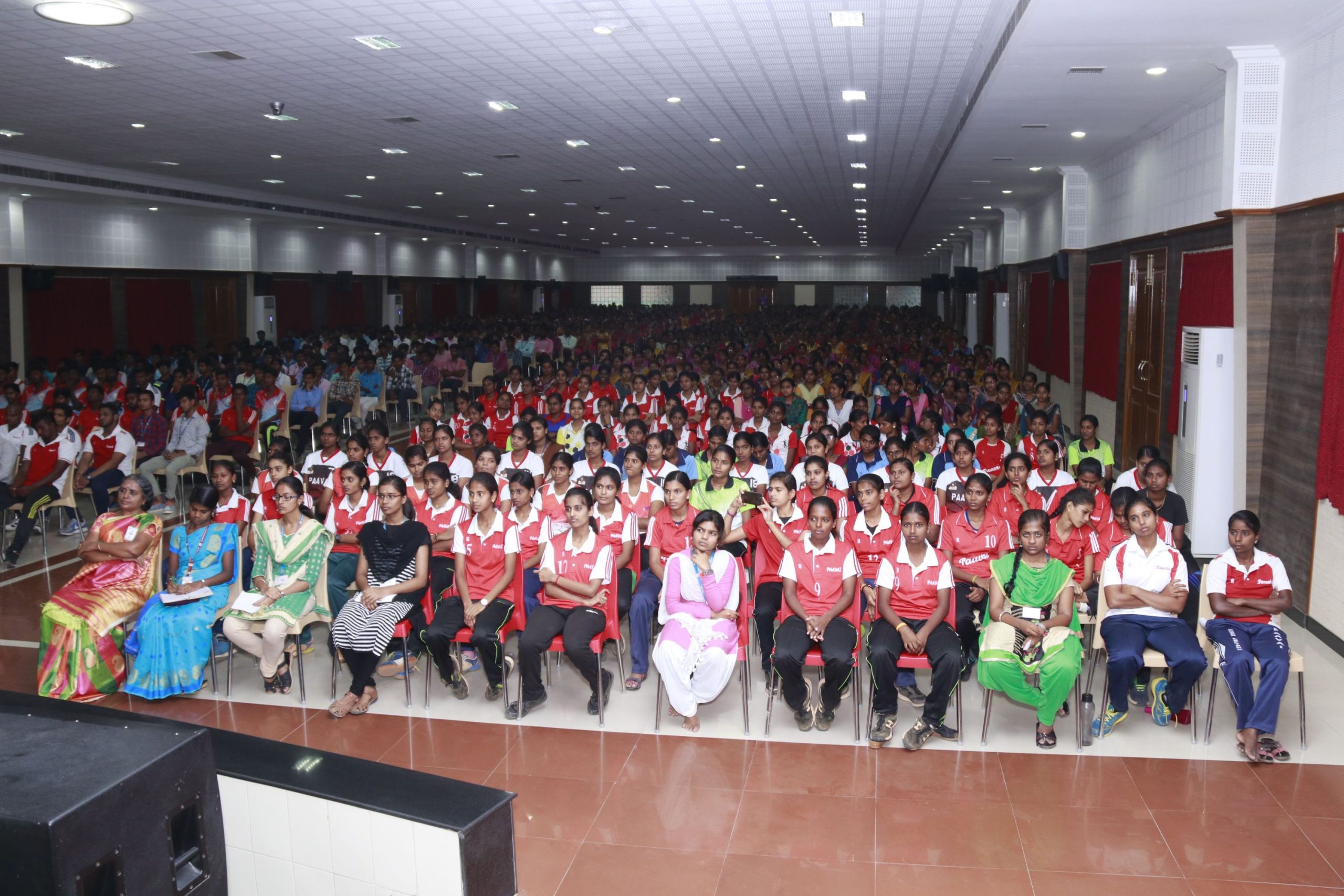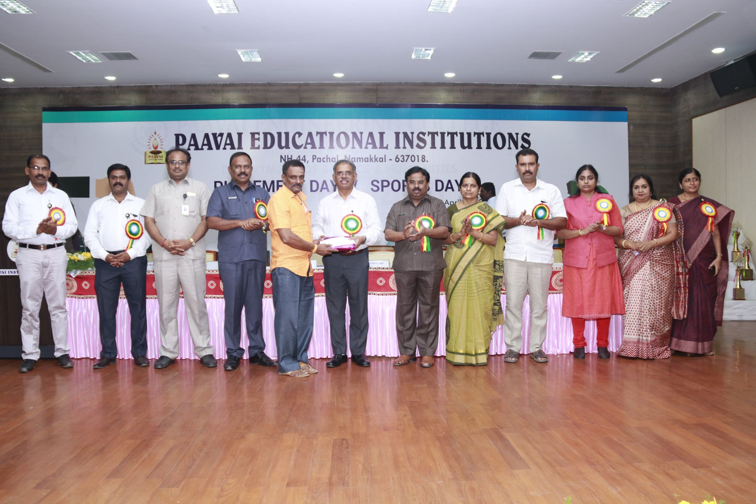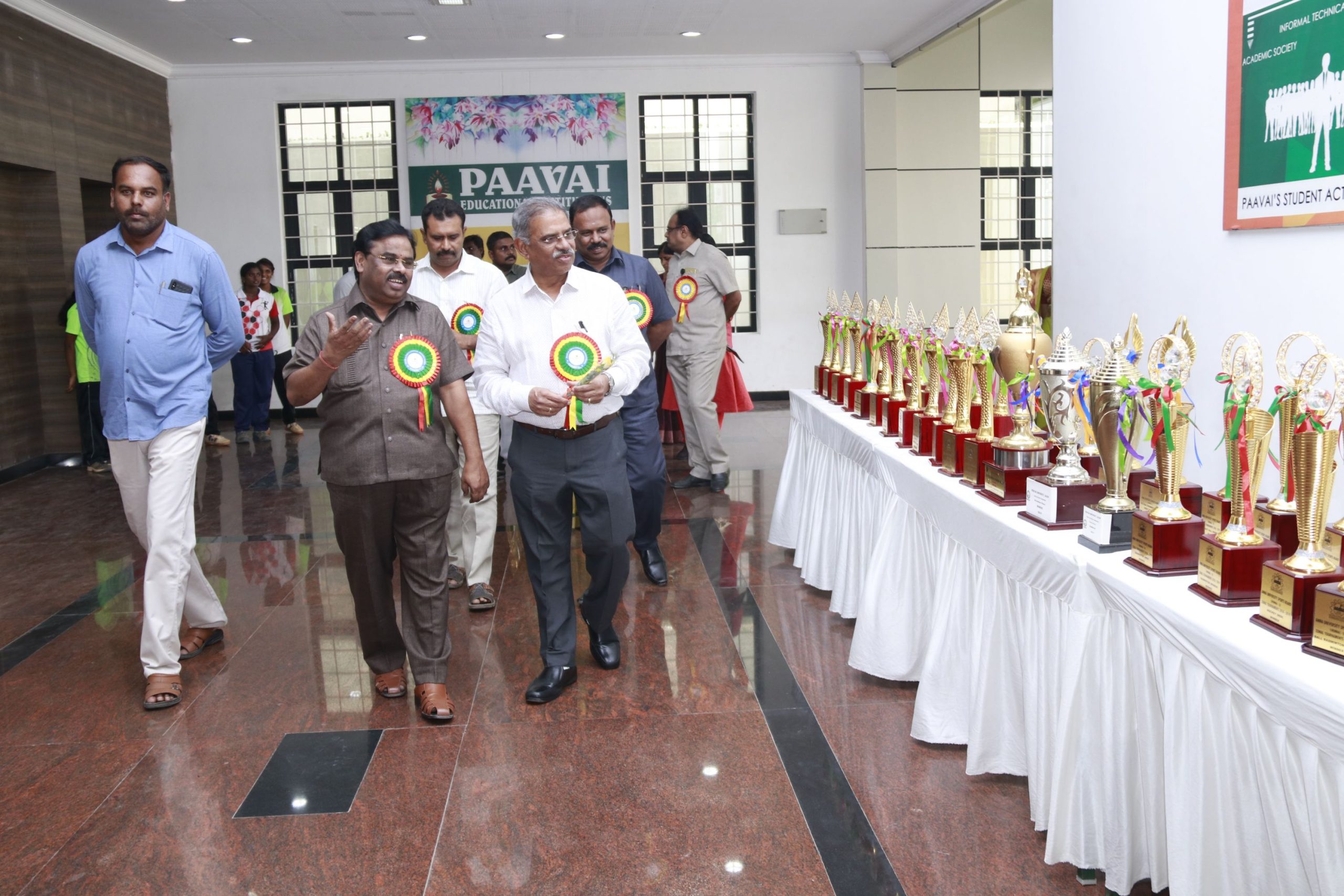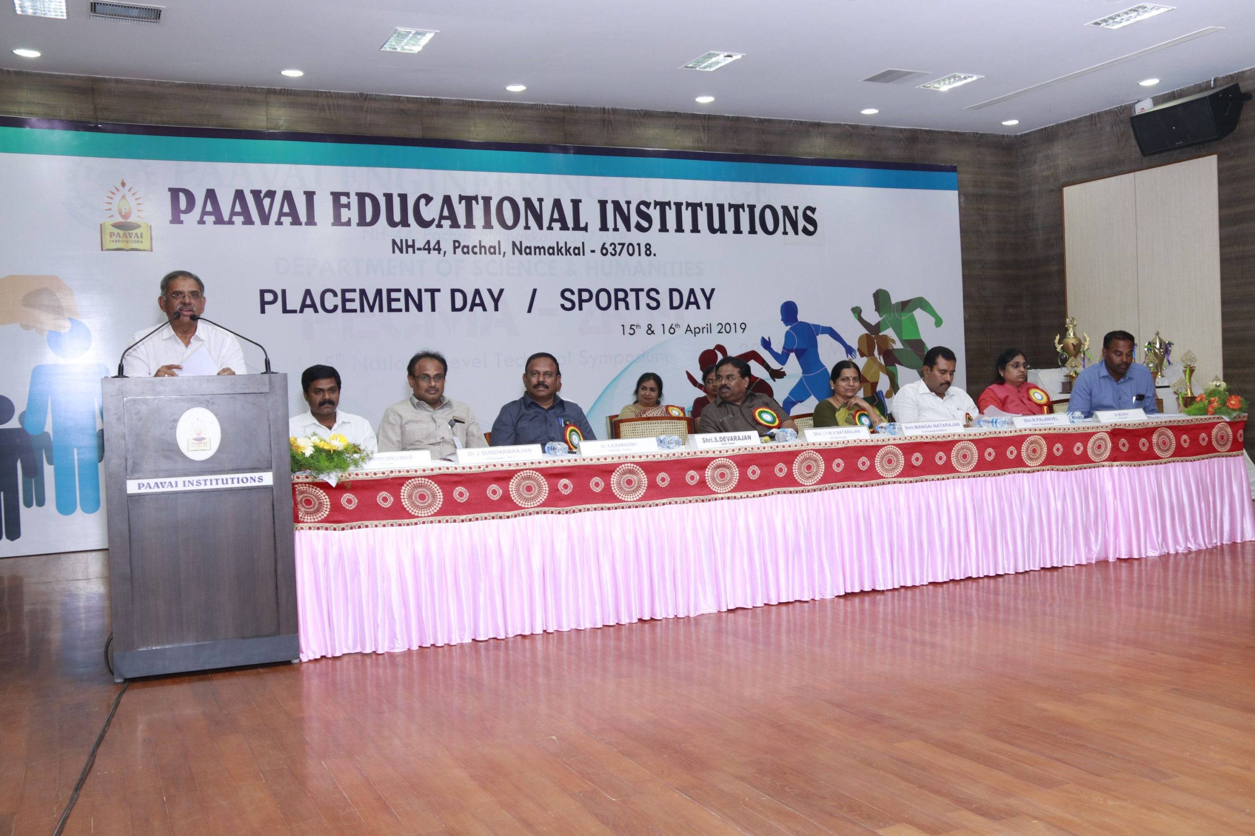 Paavai Institutions celebrated its Sports Day on 16th April 2019. Our C.A.N.V.Natarajan, Chairman, Paavai Institutions presided over the function and delivered the presidential address. The Managing Director and Chairman of Sambantham group of spinning mills Mr. S. Devarajan was the Chief Guest of the day. Ms.Swesika II ECE welcomed the gathering. The Chief Guest Mr. S. Devarajan inspired the gathering by his inspiring speech. He appreciated our sport persons for their outstanding achievements and he mentioned that sports & games play a vital role in developing the physical as well as mental health of the person. It teach us qualities such as Intelligence, achieving the goal, concentration, patience and facing the challenges. We should follow all these qualities to be successful in our professional life. He highly appreciated and praised Paavai Engineering College for securing Overall Championship with 780 points in the Anna University Inter Zone Tournament and bagged Champions of Champions Trophy for the 5th consecutive year. The chief guest with the dignitaries distributed the prizes to the Inter University students who won Gold medals. Our chairman honoured the chief guest with the memento. Our Correspondent Srimathi.Mangai Natarajan, Directors, Principals, head of the Department, faculty members & students of Paavai Institutions were present. Ms.R.Abinaya II ECE delivered the vote of thanks.The function ended up with National anthem.
