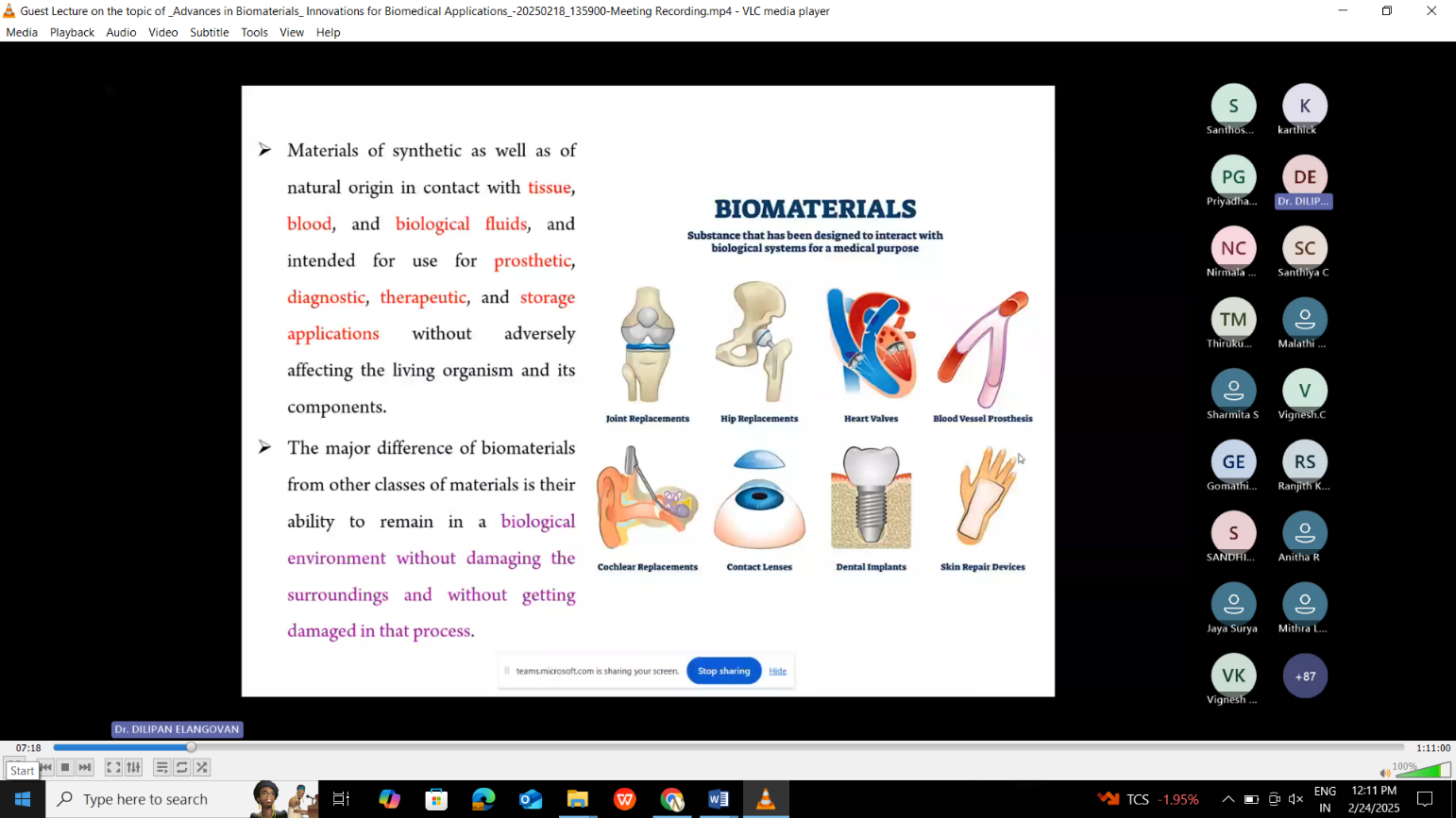 The Department of Biotechnology organized an online Guest Lecture on “Advances in Biomaterials: Innovations for Biomedical applications” on 18th February 2025. The event was convened by Dr.C.Nirmala, Head of the Department, Paavai Engineering College and Staff Coordinator Mrs.T.Saranya, AP/BT and Ms.E.Gomathi, TRA/BT. Ms.C.Santhiya Third year of Biotechnology welcomed the gathering. The session was led by Dr.E.Dilipan, Professor-Research, Department of Physiology, Saveetha Dental College and Hospital, Saveetha University, Chennai. Ms.S.Sharmita Second year of Biotechnology provided an introduction about guest speaker. The Speaker E.Dilipan discussed about Biomaterials and innovations in Biomedical application . His presentation highlighted innovative biomaterials for regenerative medicine, offering hope for tissue repair that included interactive discussions and allowed participants to ask questions and engage with the speaker.