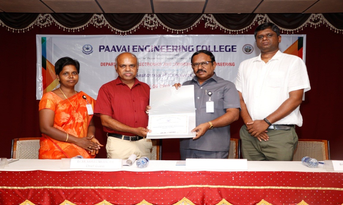 Then the certificate of student chapter of ECE was given by the IE(I) Chairman to the Director administration, Paavai Institutions.