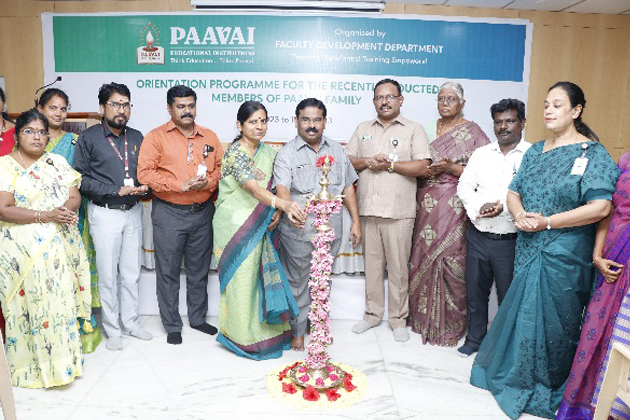 The Faculty Development Department organized a six-day Orientation Programme for the recently recruited faculty members to make them familiar with the institutional practices and the instructional strategies of teaching and learning, because teachers are considered to be the pillars of Paavai. The Orientation Programme was held from 11.09.2023 to 16.09.2023 at Smart Hall. 50 faculty members from Paavai Educational Institutions attended the Orientation Programme.